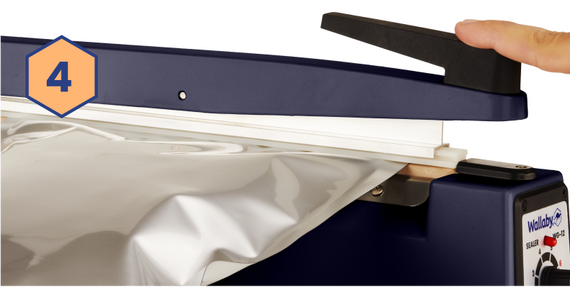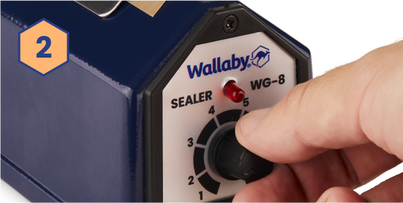 Set your dial. The numbers on the dial correlate with the thickness of the material.